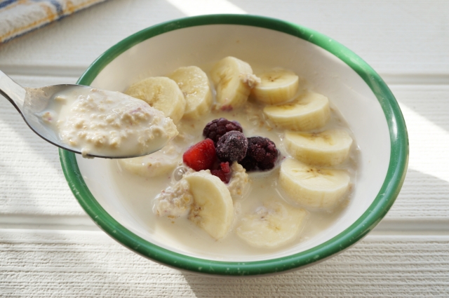 - 蓋をして冷蔵庫に一晩置きます。朝になったらそのまま食べるか、ハチミツで甘さを加えることもできます。