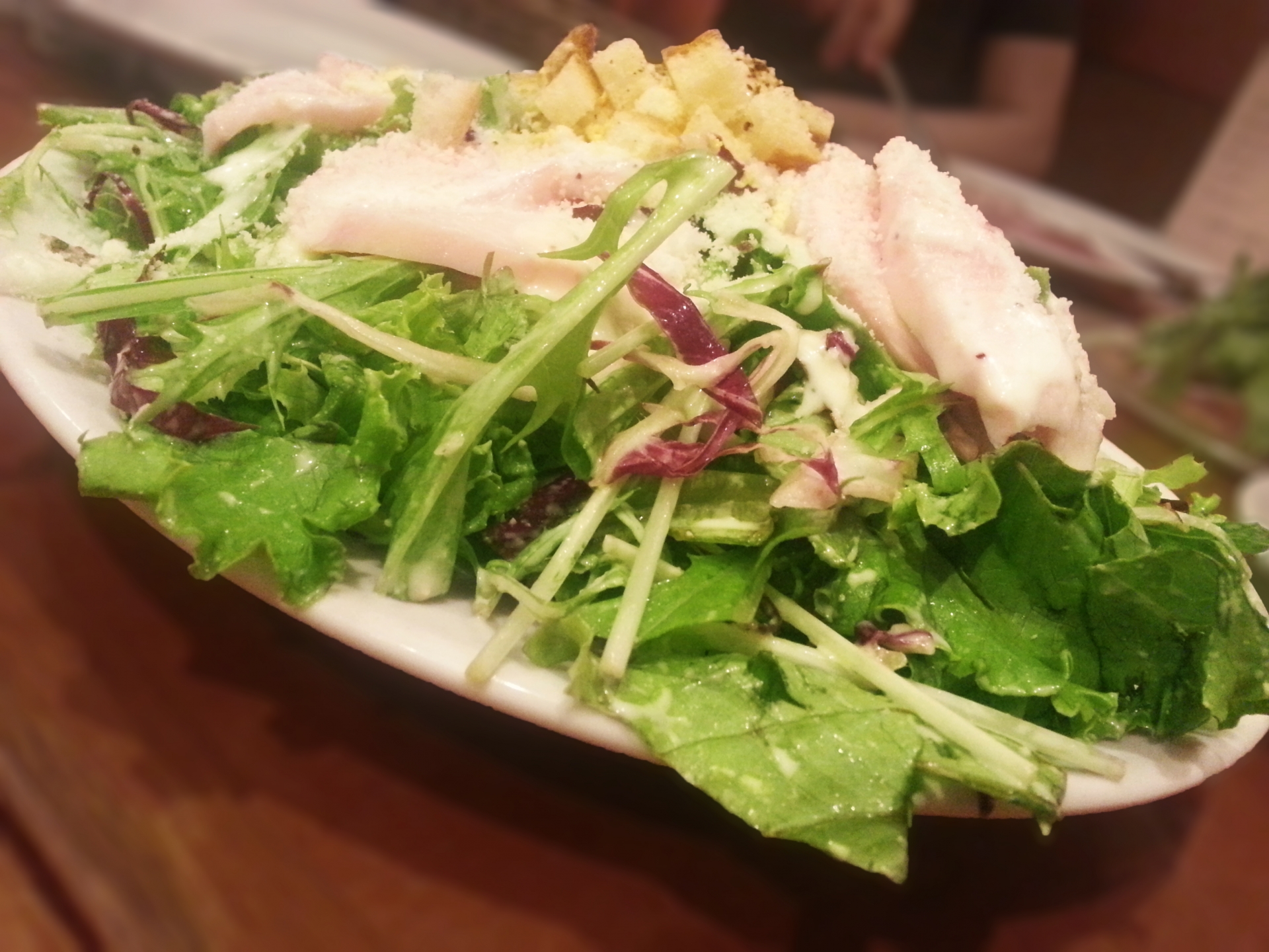 • スライスした鳥の胸肉を上にのせ、最後にお好みでパルメザンチーズを上からかけます。
